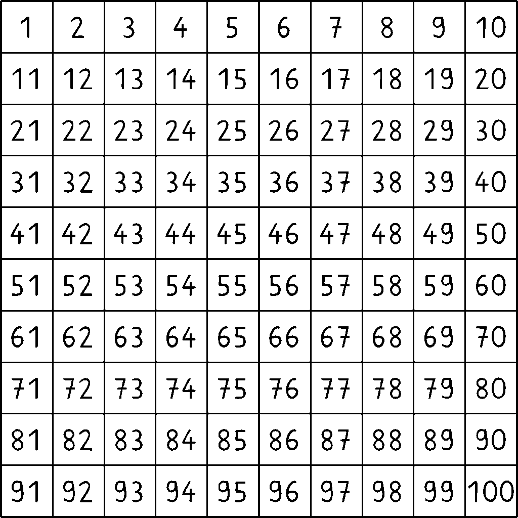 Schauen wir uns mal eine herkömmliche Hundertertafel an: