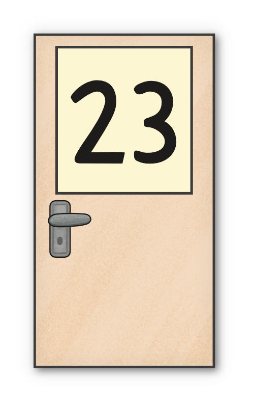 Zimmer 23 liegt im 2. Stock, dritte Tür im Flur.